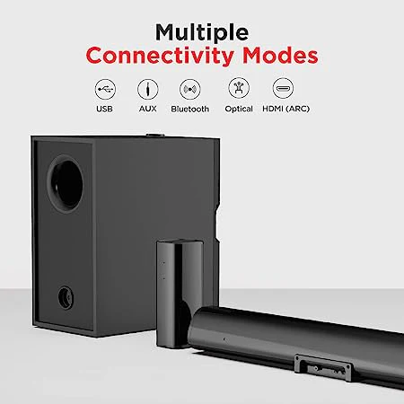 Universal Connectivity Hub: Offers multiple input modes including HDMI (ARC), Optical, USB, and AUX for universal compatibility with smart TVs.