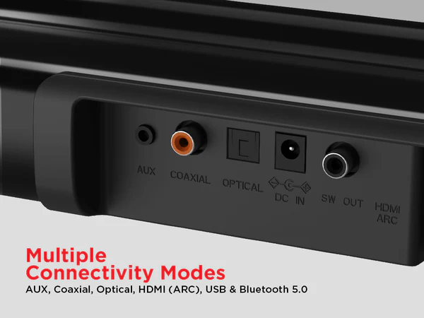 • Multi-Connectivity Hub: Supports HDMI (ARC), Optical, Coaxial, USB, AUX, and Bluetooth v5.0 for universal compatibility.