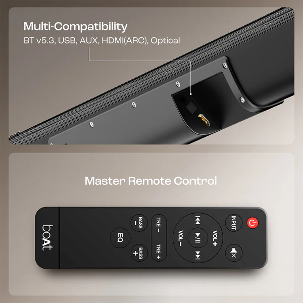 120W RMS Total Output: Delivers a powerful and clear boAt Signature Sound that fills the room, making it ideal for movies and music.