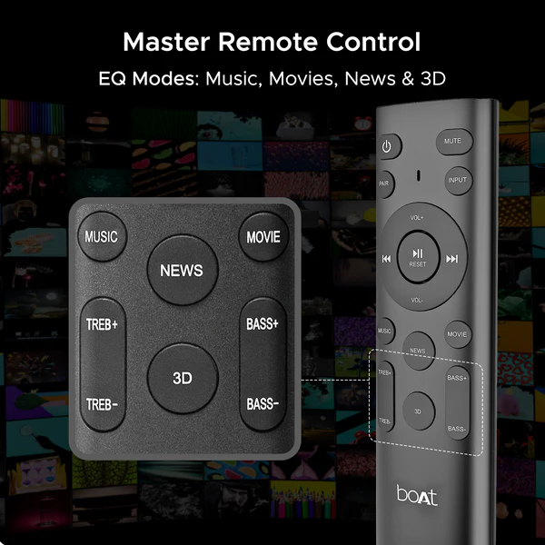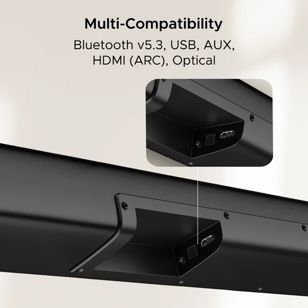 The boAt Aavante Bar 2000 Pro is a premium 2.1 channel soundbar system that significantly ramps up the power to a massive 200W RMS, designed for those who want a true high-fidelity home theater experience. A major highlight of this “Pro” model is the Wireless Subwoofer, which provides the freedom to place the bass unit anywhere in the room without the clutter of trailing wires, while still delivering earth-shaking low frequencies. Combining a sleek, modern soundbar with a powerful 6.5-inch subwoofer, it creates an expansive soundstage that brings cinematic depth to your living room. With advanced Bluetooth v5.3 and a dedicated two-band equalizer for bass and treble, it offers both modern convenience and professional-grade customization for audiophiles and movie buffs alike.