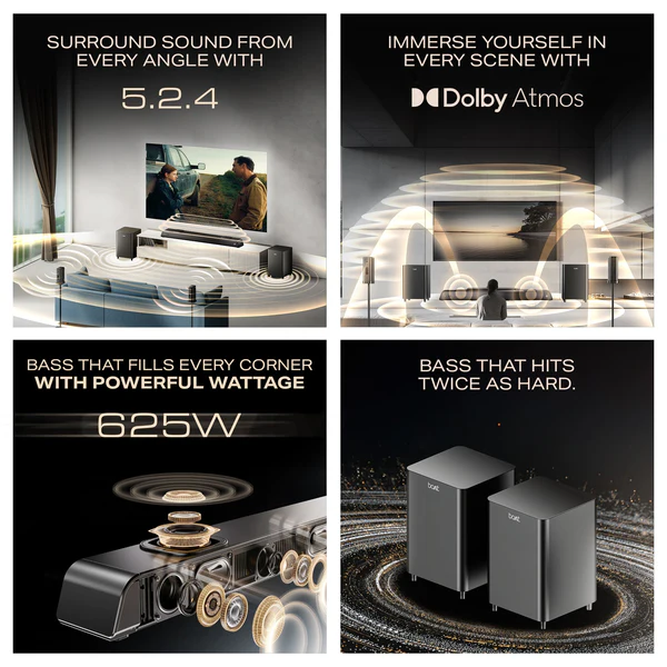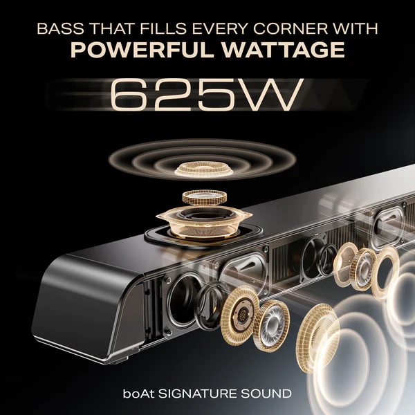620W RMS Output: Provides extreme power for a room-shaking boAt Signature Sound experience with incredible clarity.