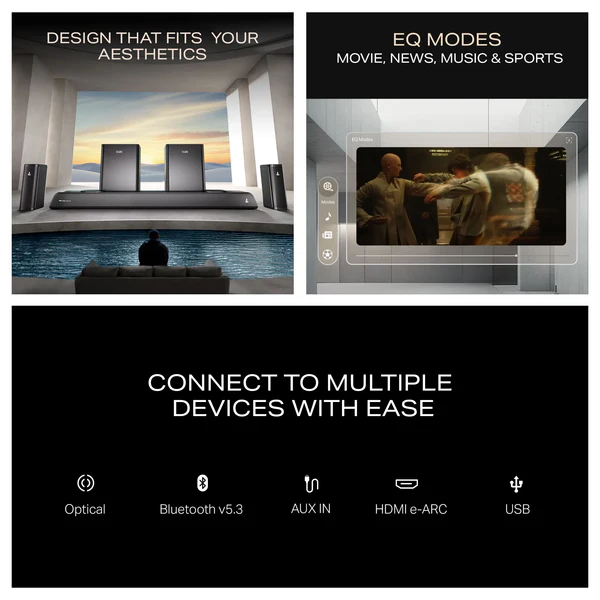 Premium Cinematic Aesthetic: A sleek, modern design with a high-end finish that can be wall-mounted to complement your premium TV setup.