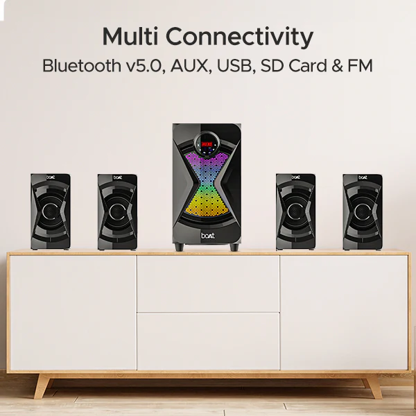 The Aavante Bar 1500 Pro is a sleek soundbar designed for TVs and home cinema setups. In contrast, the Blitz 1500 Pro is a 4.1-channel multimedia speaker system with satellite speakers and RGB lighting, making it ideal for parties or a desktop computer setup.