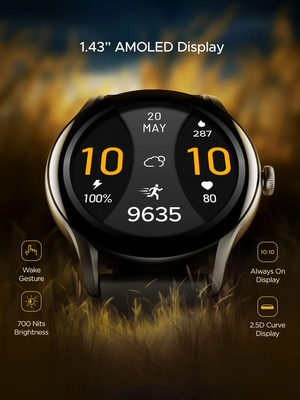 1.43″ AMOLED Display: Features a high-resolution, always-on display with 700 nits brightness, ensuring excellent visibility even in direct sunlight.