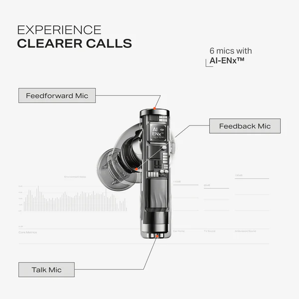 6-Mic AI-ENx Technology: Equipped with six microphones and artificial intelligence to ensure crystal-clear call quality even in noisy environments.