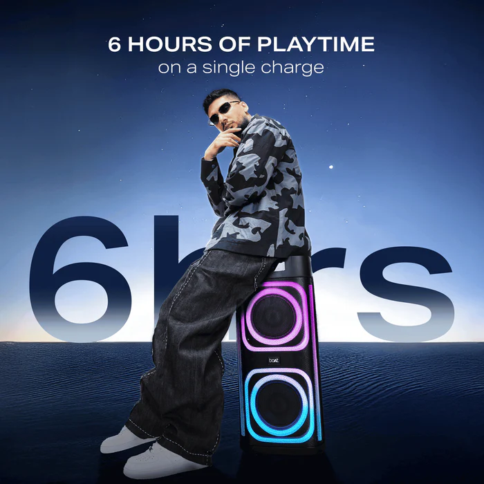 300W RMS boAt Signature Sound: Powered by dual 8-inch high-quality woofers and dual 2.5-inch tweeters, it provides a bass-heavy, room-filling audio experience.