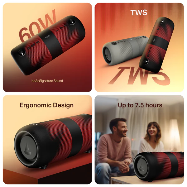 60W boAt Signature Sound: Features massive 76.2mm drivers that deliver immersive, high-octane audio with deep, thumping bass.