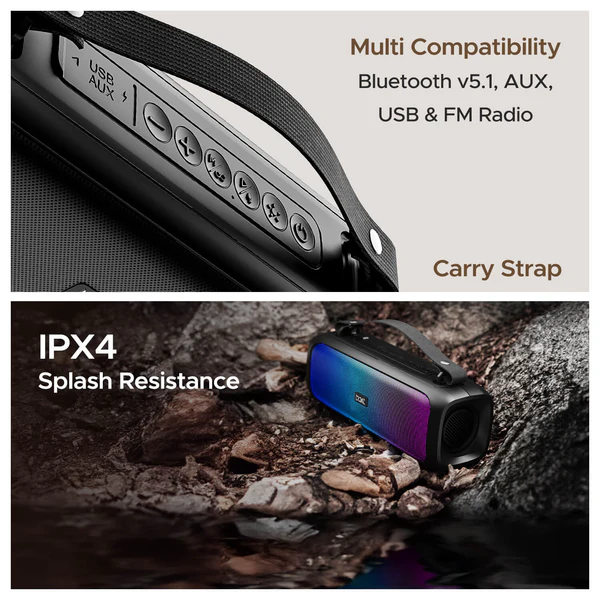 IPX4 Splash Resistance: Ruggedly designed to be water and splash resistant, making it safe for poolside use or light outdoor showers.