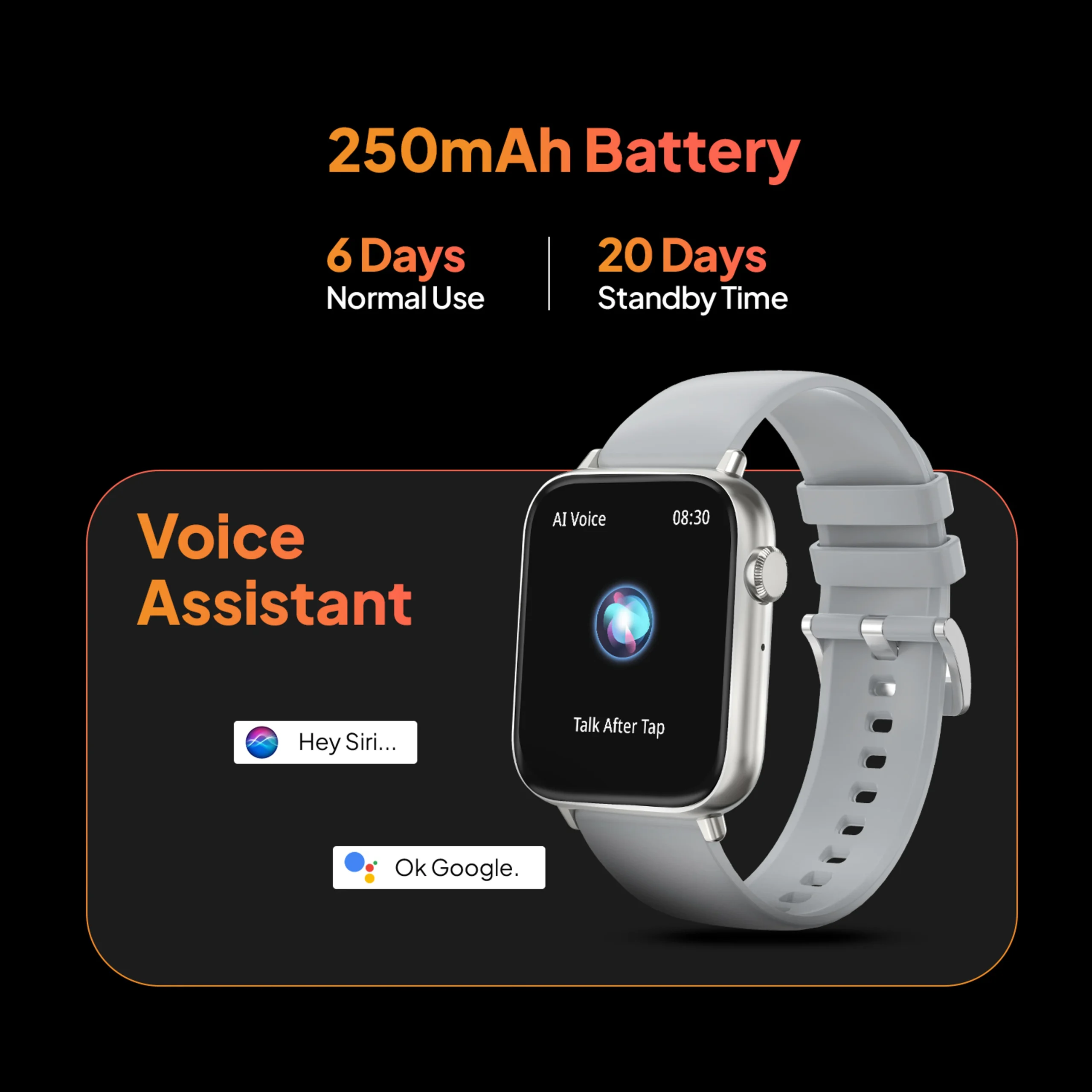 AI Voice Assistant: Supports hands-free control via Siri and Google Assistant for setting alarms, checking weather, or managing notifications.