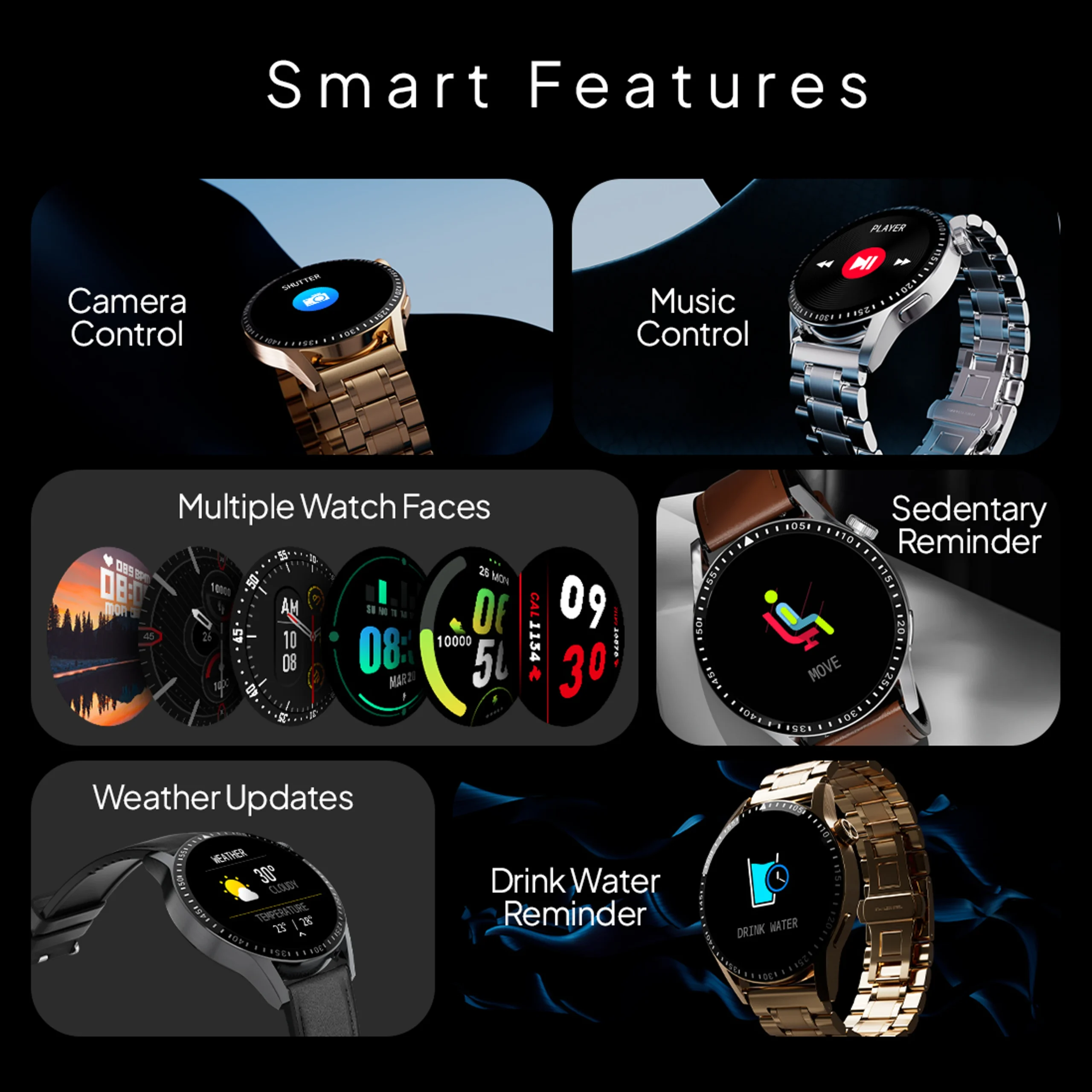 Premium stainless-steel body with stylish round dial.