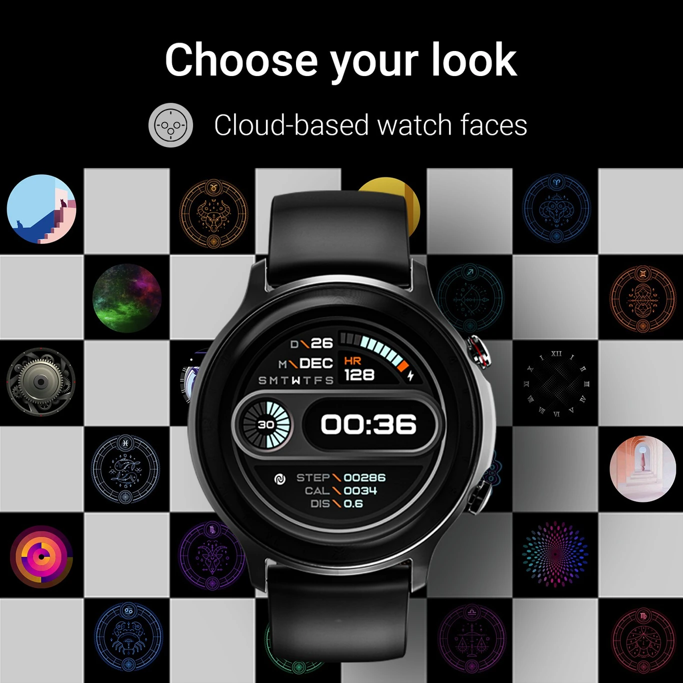 Classic Round Display: A sharp 1.28-inch TFT LCD color touch screen with a 240×240 pixel resolution.