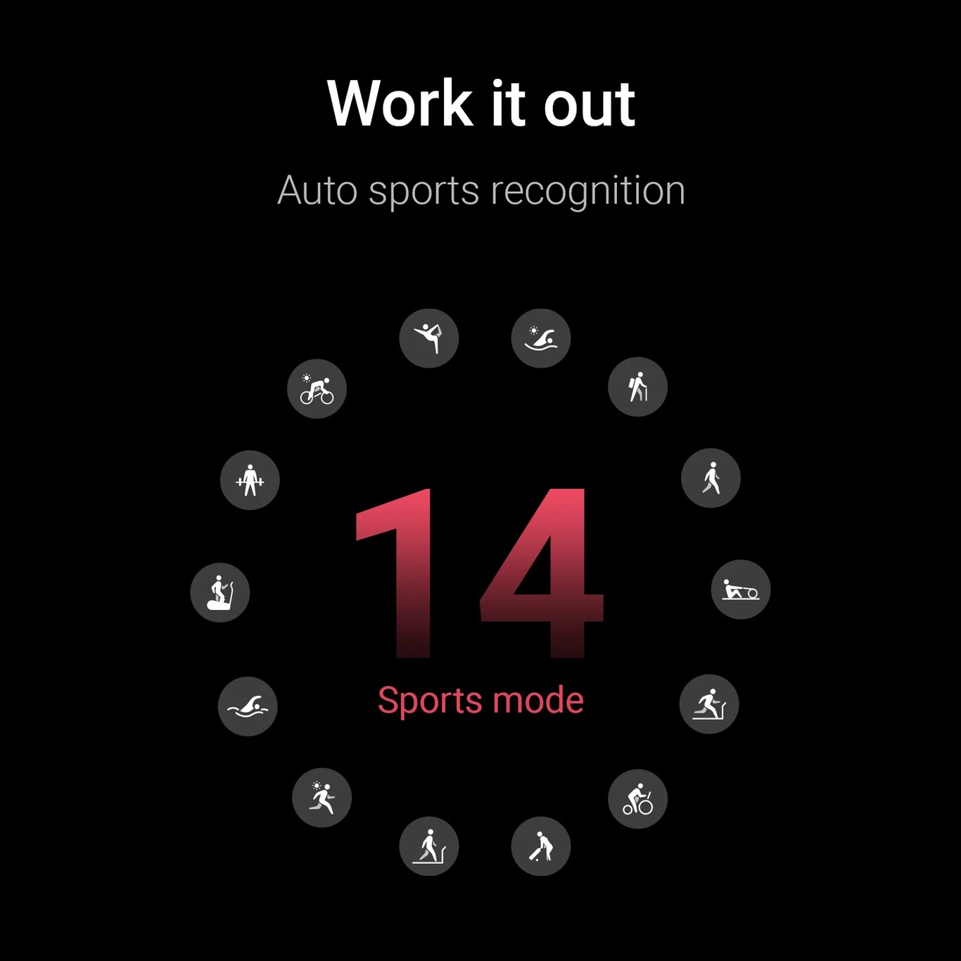 14 Sports Modes: Accurately tracks various exercises and includes an auto sports recognition feature.