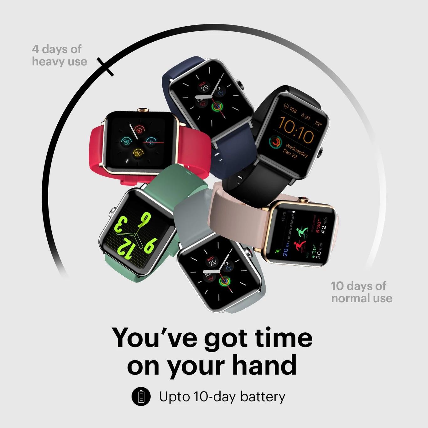 10-Day Battery Life: Powered by a 210mAh battery that offers up to 10 days of typical use on a single charge.