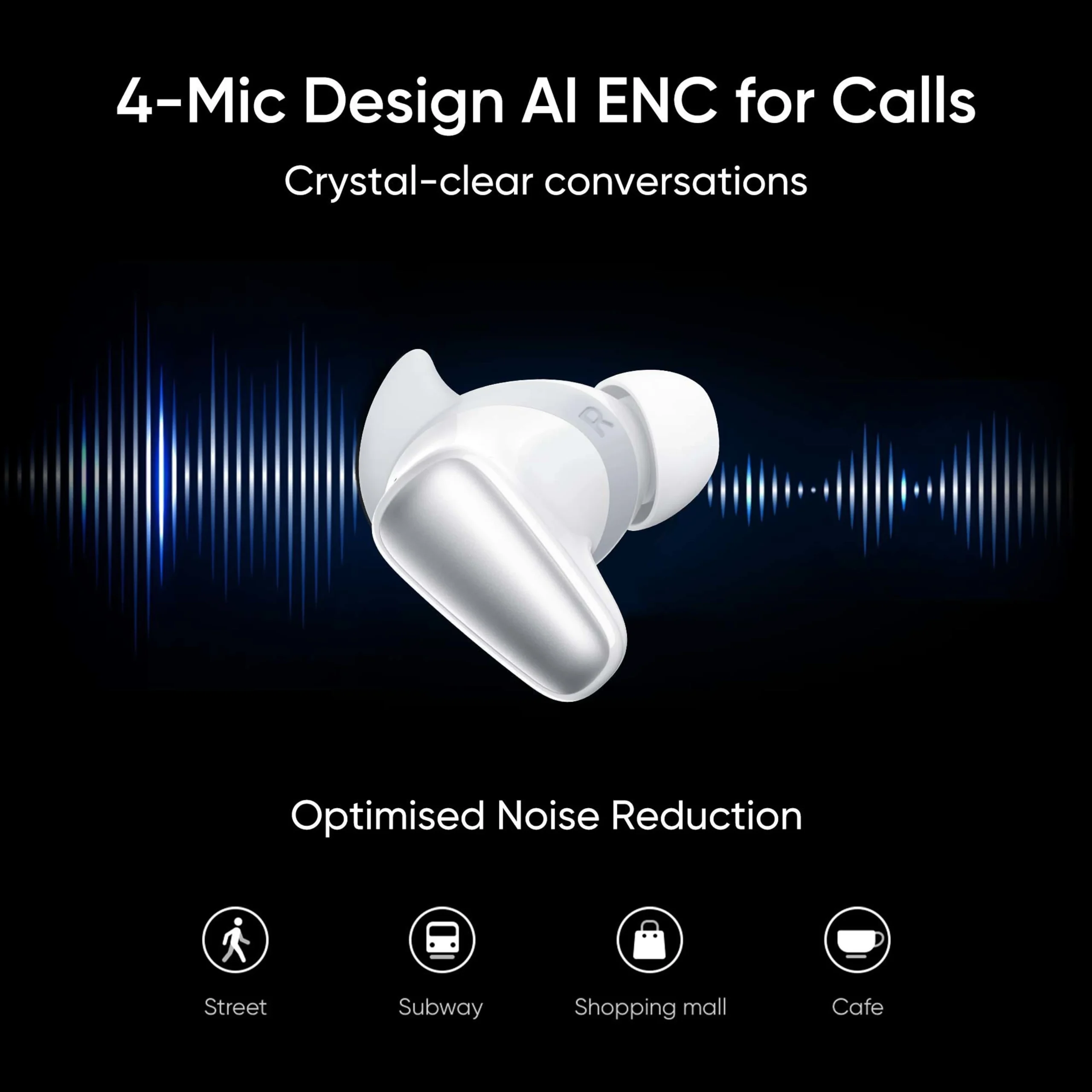 Quad-Mic AI ENC: Equipped with four microphones and an AI algorithm to filter out background noise for crystal-clear calls.