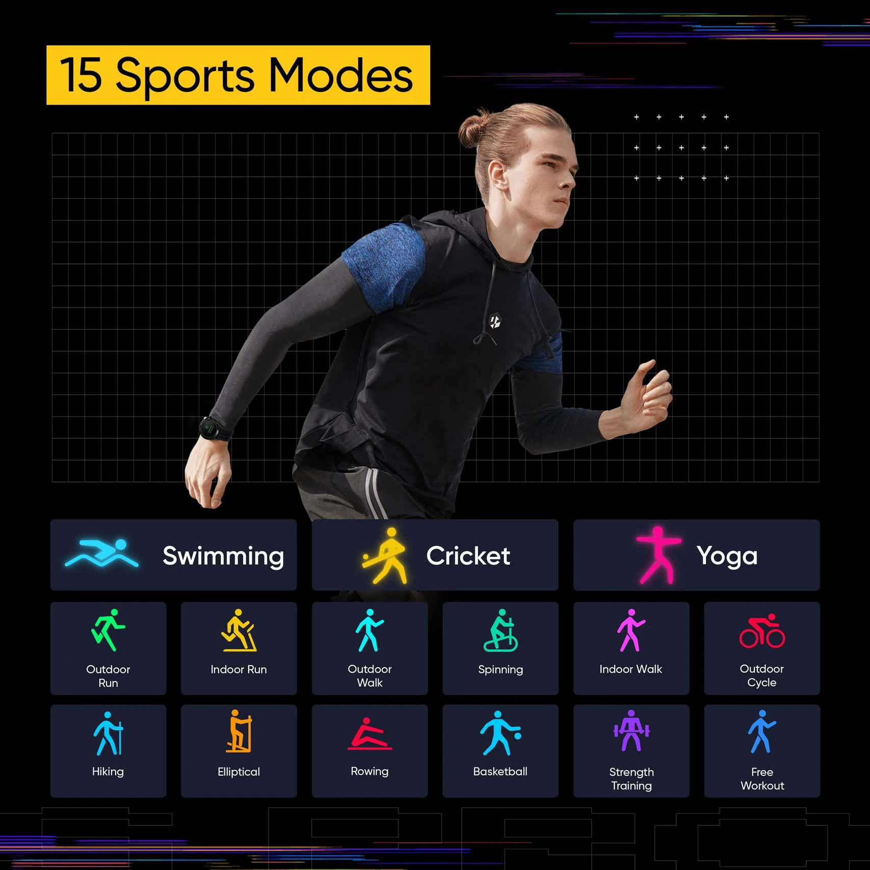 15 Professional Sports Modes: Includes a new dedicated Swimming mode alongside running, cycling, yoga, and more for comprehensive tracking.