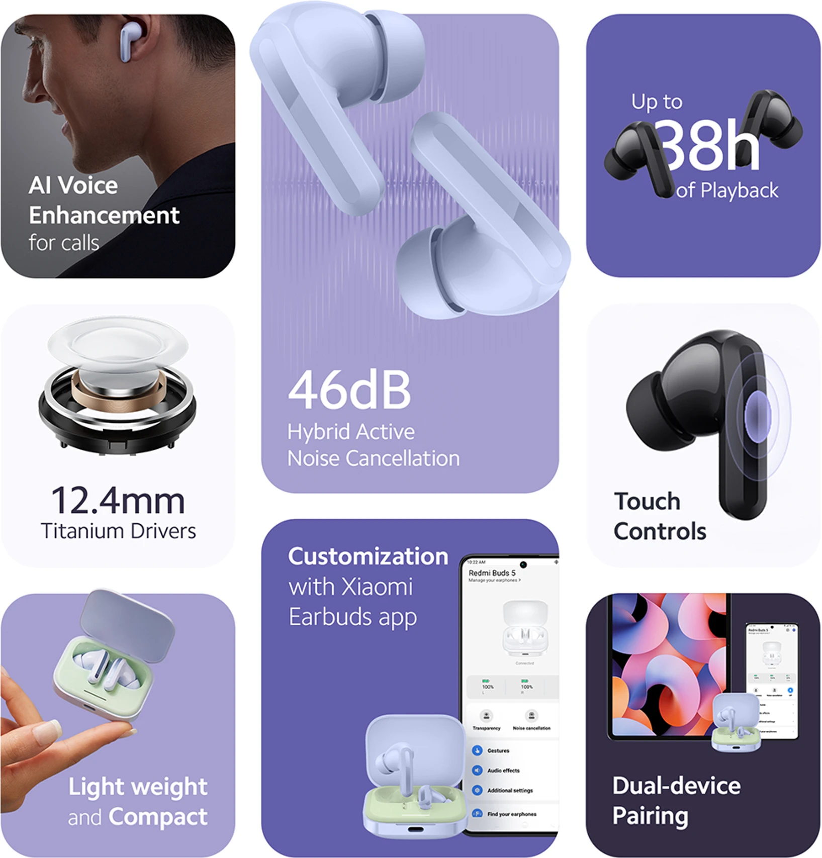 Customizable EQ via App: Use the Xiaomi Earbuds App to choose between different sound profiles or customize your own audio experience.