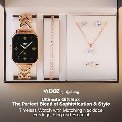 The Vibez Allure Luxury is an elegant smartwatch that bridges the gap between a high-tech wearable and a piece of fine jewelry. Specifically tailored for women, it features a large 1.83-inch display and a sophisticated stainless steel strap that complements formal and ethnic wear. Beyond its looks, it offers practical features like Bluetooth calling and comprehensive health monitoring, including heart rate and SpO2 tracking. It is a versatile accessory that ensures you stay connected and healthy without compromising on your style.